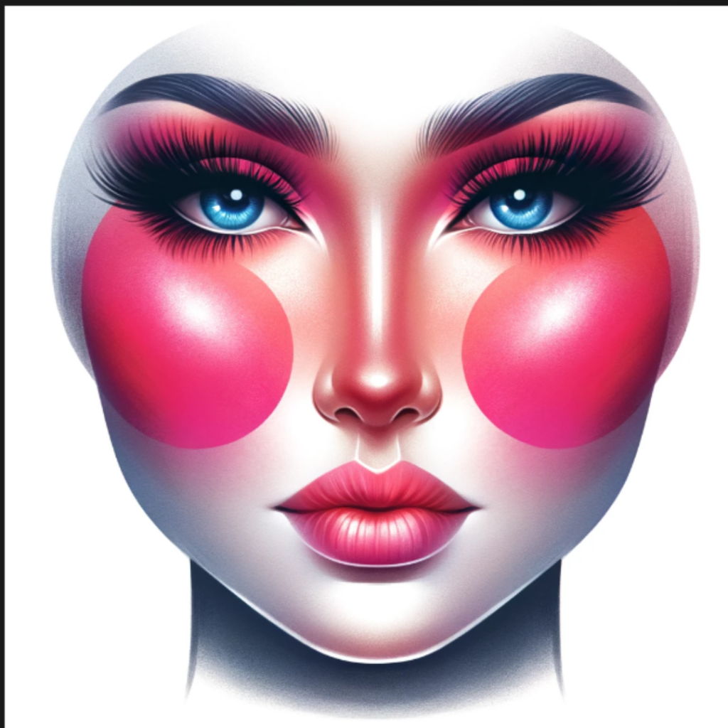 そして、チークの番!これがまた、丸顔をキュートに演出する秘訣なのよね。ピンクかコーラルピンクのチークを、頬のリンゴの部分にドバッとのせて、上へ上へとぼかすの。これで、自然なリフトアップ効果が出るし、笑顔がもっとスウィートに輝くのよ。