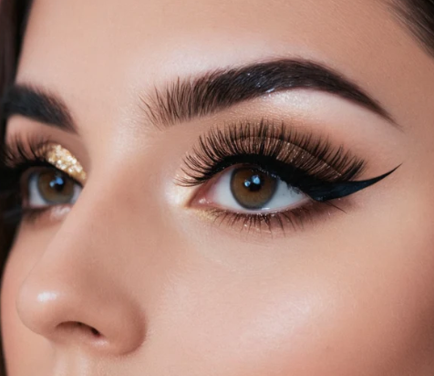 - 目尻長めの「キャットアイ」型:目尻が長めのデザインは、キリッとした雰囲気を演出しつつ、女性らしさもキープ。目元が引き締まるから、バランスよく仕上がるのが特徴だよ。目尻を少し上げたデザインにすると、顔が引き締まって見えるから、特にステージ上では印象的に仕上がるよ!