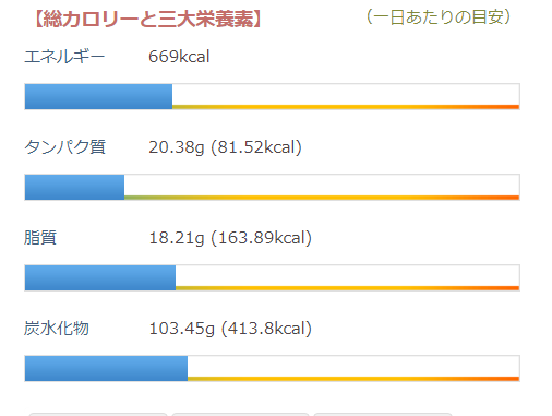 これらのグラフは、1日の必要カロリーが、1,800kcal として算出してます。成人女性体重48kg、活動量が標準的な想定です。性別、年齢、体重、活動量によって変わってきます。自分の1日の必要カロリーが分からない方は、算出してください。こちらの記事を参考にどうぞ。