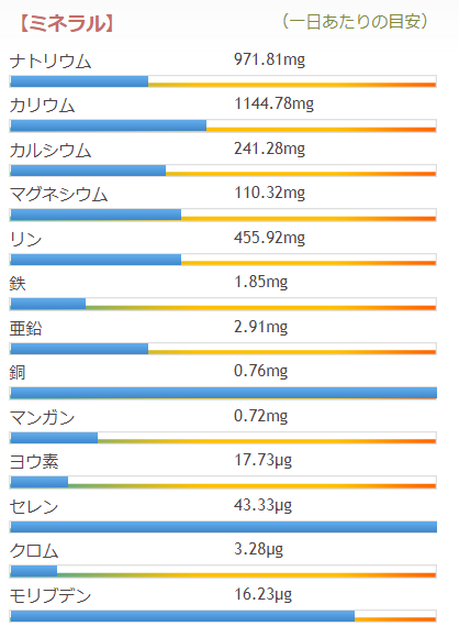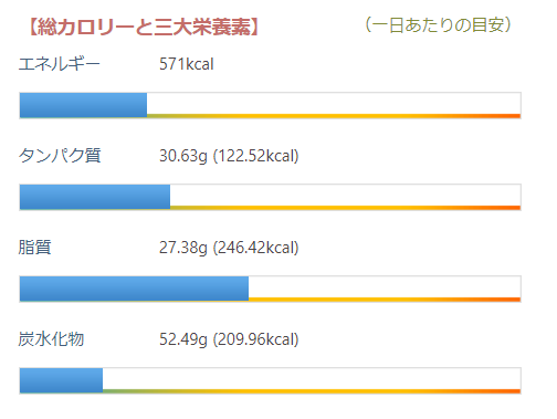 これらのグラフは、1日の必要カロリーが、1,800kcal として算出してます。成人女性体重48kg、活動量が標準的な想定です。性別、年齢、体重、活動量によって変わってきます。自分の1日の必要カロリーが分からない方は、算出してください。こちらの記事を参考にどうぞ。