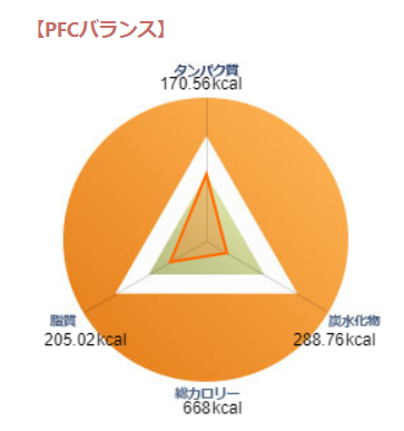これらのグラフは、1日の必要カロリーが、1,800kcal として算出してます。成人女性体重48kg、活動量が標準的な想定です。性別、年齢、体重、活動量によって変わってきます。自分の1日の必要カロリーが分からない方は、算出してください。こちらの記事を参考にどうぞ。