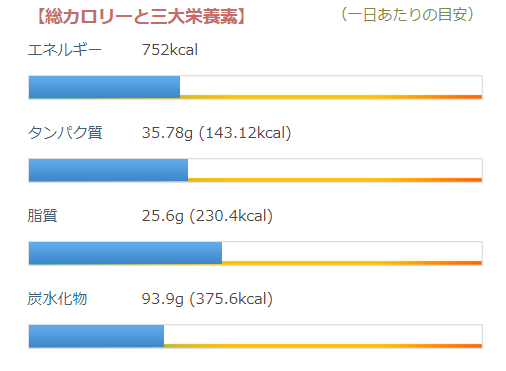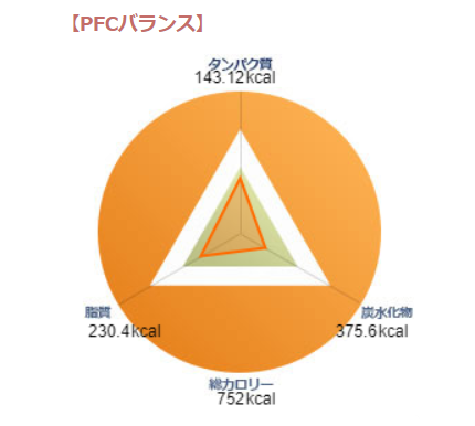 これらのグラフは、1日の必要カロリーが、1,800kcal として算出してます。成人女性体重48kg、活動量が標準的な想定です。性別、年齢、体重、活動量によって変わってきます。自分の1日の必要カロリーが分からない方は、算出してください。こちらの記事を参考にどうぞ。