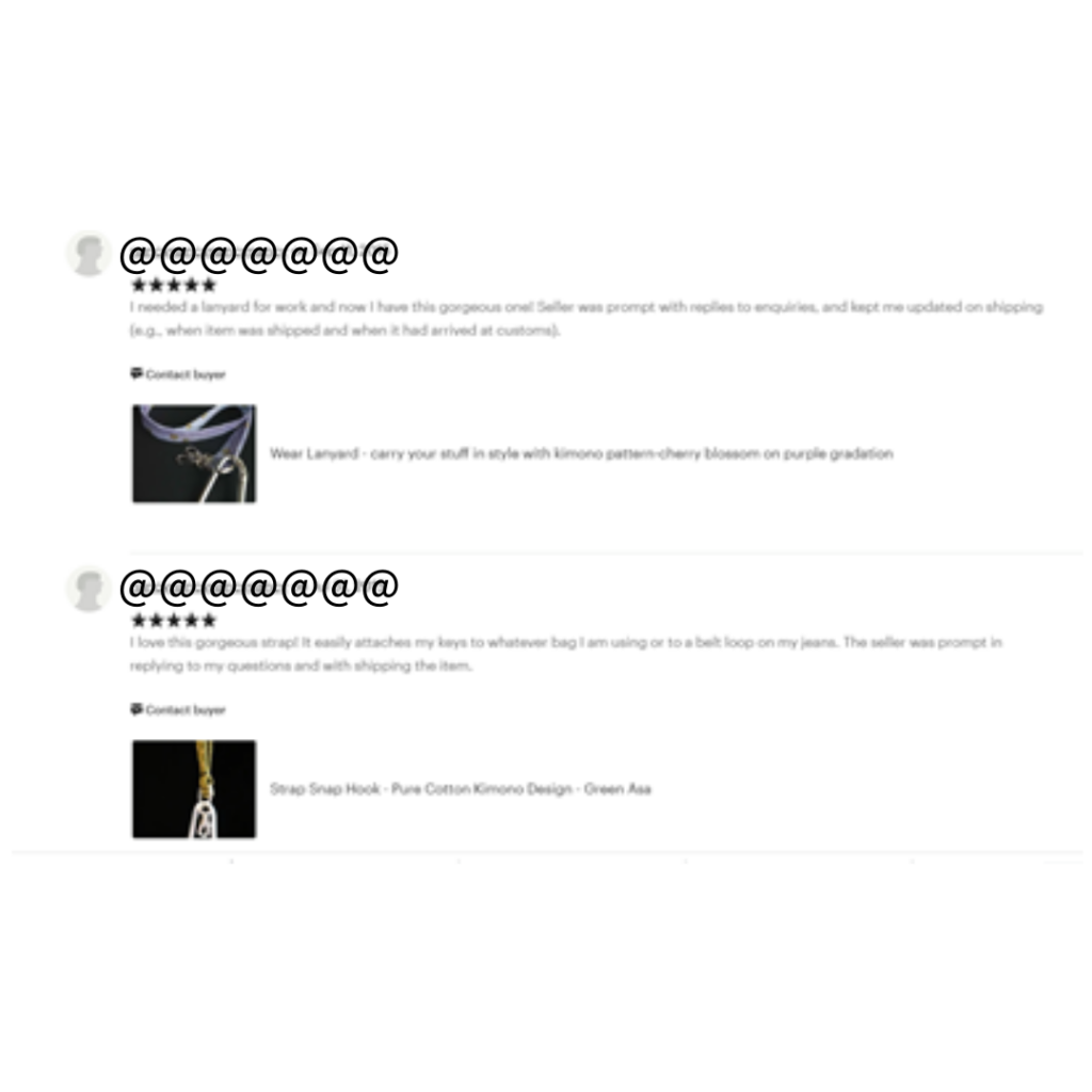 ”I needed a lanyard for work and now I have this gorgeous one! Seller was prompt with replies to enquiries, and kept me updated on shipping (e.g., when item was shipped and when it had arrived at customs).”